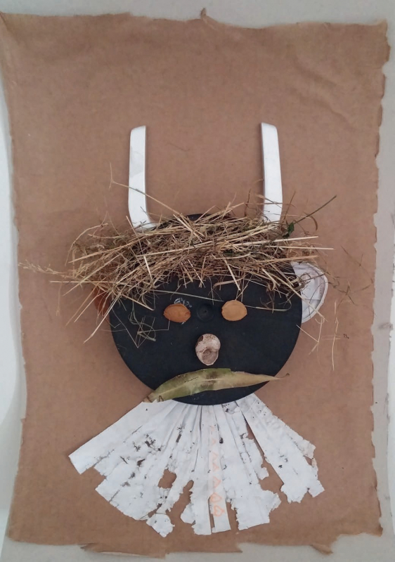 Pour reprendre sur le temps de confection de la marionnette, Martin poursuit ce qu’il avait commencé. Il ajoute donc la tête et façonne l’expression du visage de sa marionnette. Il ajoute deux yeux et dessine un grand sourire à sa confection à l’aide d’un serpentin de couleur. Il colle une baguette de bois en dessous de sa marionnette afin de rendre possible sa préhension. Je lui demande s’il a une idée du nom de sa marionnette ou même si ça sera un garçon ou une fille mais pour le moment, son choix n’est pas encore défini. Il termine l’ajout de la tête. Le corps de sa marionnette est désormais complet et les premières associations apparaissent. Martin commence à investir sa confection : « elle peut marcher maintenant » ; « elle nous regarde ». Ainsi, initialement, la marionnette est un objet inanimé car elle n’est qu’un ensemble de matériaux. Ce n’est que lorsqu’elle est achevée qu’elle peut s’animer par les éléments associatifs qu’elle permet de projeter. Ces premiers éléments me font associer du côté de la petite enfance lorsqu’un parent se réjouit des premiers pas de son enfant. Martin ne représenterait-il pas quelque chose de l’ordre de la naissance ? Je soutiens l’idée que Martin me raconte comment sa marionnette, au fur et à mesure qu’elle s’anime, devient le représentant de son éveil psychique dans la prise en charge. Par ailleurs, la marionnette nous regarde, j’entends alors qu’en retour je dois la regarder et la considérer comme un être à part entière doté de sa propre identité psychique. C’est un élément important à prendre en compte car il modifiera, dans la suite de la thérapie, mon positionnement.