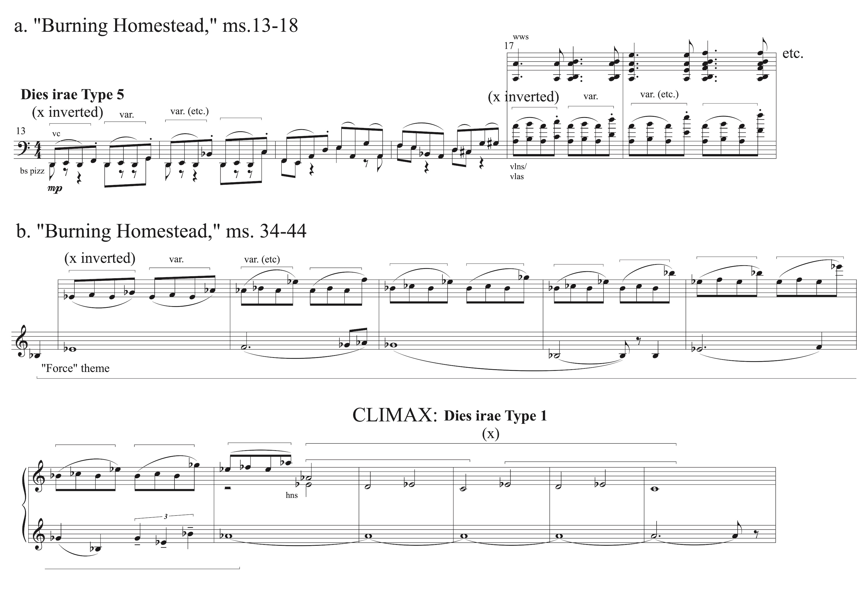 Revenge of the Sith, three types of Williams Dies irae in “Lament,” personal transcription.