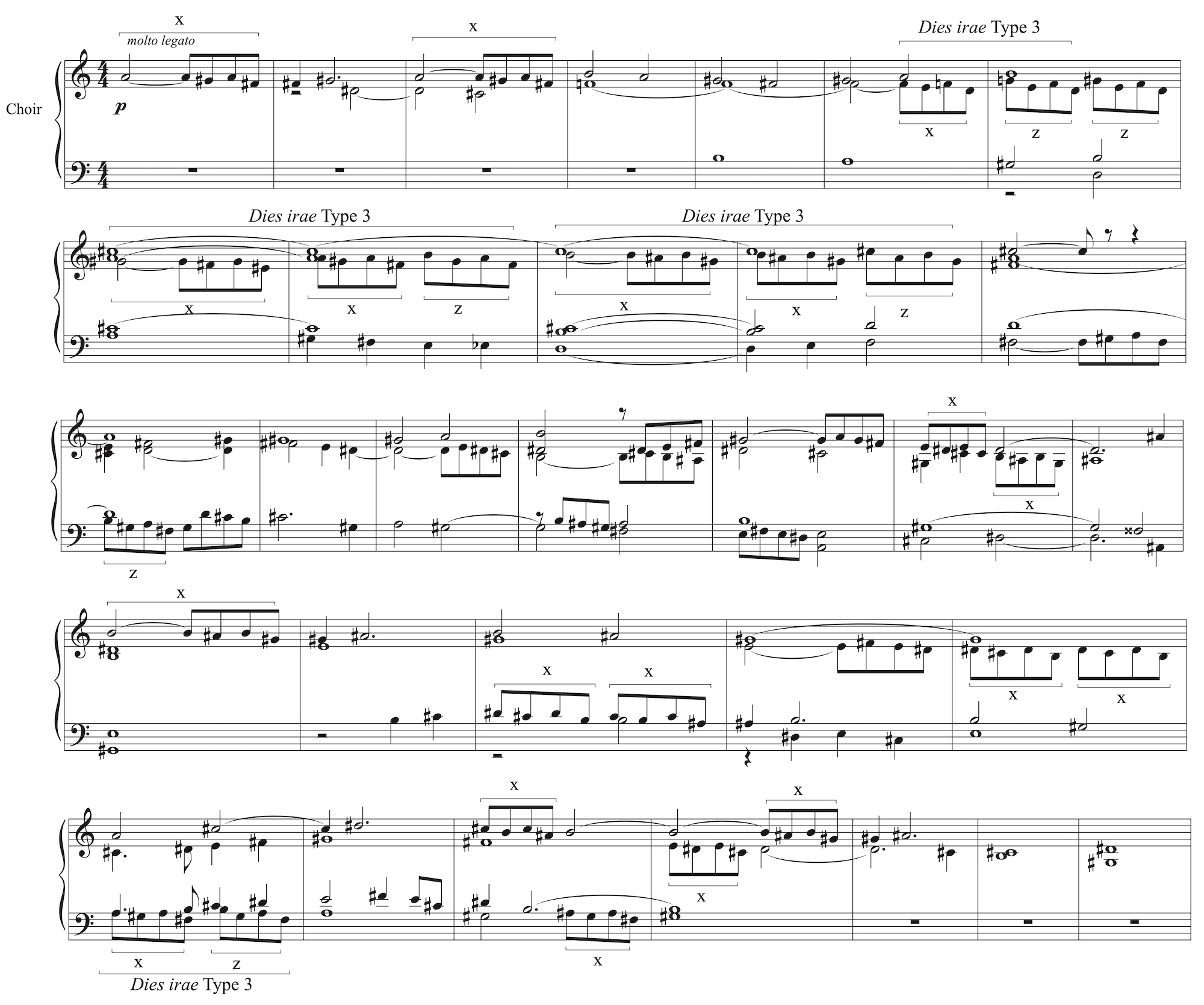 Dies irae Type 3 (motif x + motif z or y of Dies irae transposed to start on scale degree 4).
