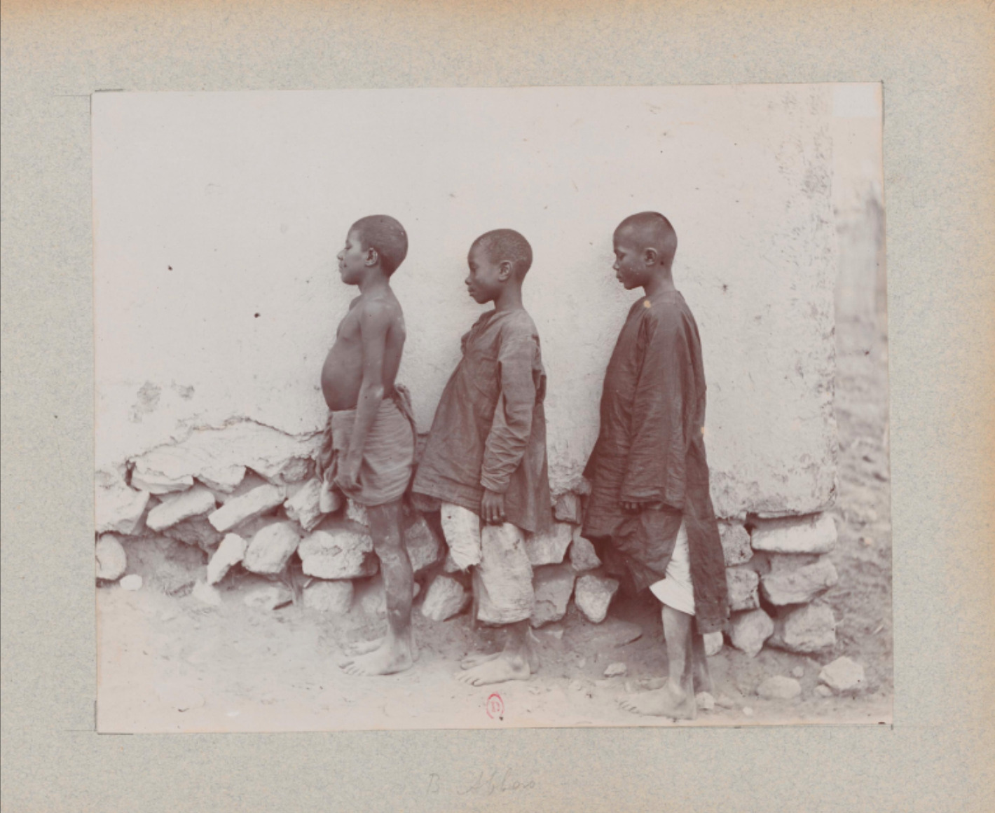 Alors que Jane documente leurs exploits quotidiens dans ses chroniques, Marcel publie le traité majeur L’art antique de la Perse, qui demeure encore aujourd’hui une référence en histoire de l’art. Les récits insistent à plusieurs reprises sur l’enjeu des mesures et des dimensions ; les archives de Marcel comprennent des dizaines de cartes et de dessins, dont plusieurs ont été publiés en parallèle des comptes-rendus de Jane. Ce sont pourtant les albums personnels qui révèlent une continuité dérangeante entre la perspective archéologique et la perspective ethnographique. Contrairement aux images humanisantes – même si celles-ci sont toujours marquées par une forme d’exotisme –, on y trouve de nombreux clichés au caractère plus froidement documentaire : ces productions montrent les mêmes corps décharnés sous plusieurs angles, y compris de profil, ou des individus en haillons face à la lumière brutale, et surexposée, du soleil (fig. 3). La répétition de silhouettes à la peau foncée – parfois d’enfants – souligne par contraste le regard distant et objectivant que Dieulafoy adopte parfois derrière l’objectif. Ces photographies ne témoignent pas d’une humanité partagée, mais construisent un ensemble de données frappantes, profondément racialisées, qui révèle l’internalisation d’une perspective ethnologue et coloniale.