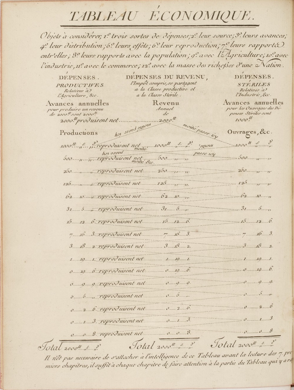 Victor Riquetti de Mirabeau, Le « Tableau économique » dans Philosophie rurale, Amsterdam, Les libraires associés, 1763, non paginé, gravure, in-4. Source : Gallica / Bibliothèque nationale de France.