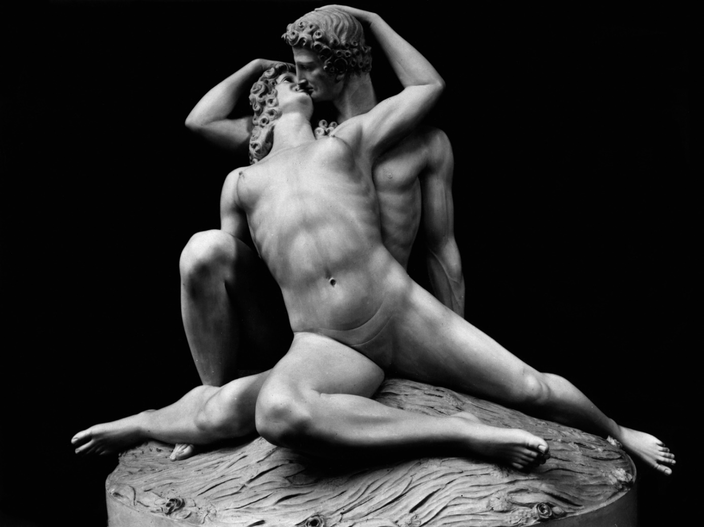 Si Andersen ne s’est jamais revendiqué ni même défini en tant qu’homosexuel, son réseau de relations témoigne de sa proximité avec des figures ayant joué un rôle de choix au sein des cercles et des subcultures homosexuelles de la fin du xixe siècle. Le tableau peint en 1884 par Andreas Andersen, le frère du sculpteur, nous montre d’ailleurs un moment de tendresse inédit entre Hendrik et le peintre John Briggs Potter, pendant leur séjour à Florence. Dans cette toile, qui se distingue par un touchant naturalisme, Andersen se délasse torse nu dans un lit défait, tandis que son ami se rhabille à ses côtés, dans l’intimité d’une chambre partagée6. La figure d’Andersen est à présent souvent associée à une histoire grand public de la culture queer, et la visite de sa maison-musée est fréquemment recommandée par les nombreux blogs et sites en lignes qui proposent des parcours LGBT+ dans la ville de Rome7. Ces initiatives intègrent la figure du sculpteur au sein d’un récit de la culture homoérotique dans l’Italie du début du xxe siècle, qu’il serait néanmoins important de reconstituer et d’interroger avec les instruments propres à la discipline de l’histoire de l’art. À ce jour, les chercheurs et les spécialistes de l’artiste n’ont en effet que très marginalement relié la figure d’Andersen à une histoire culturelle et visuelle des sexualités et du genre. Pourtant, une telle approche, au-delà d’un simple questionnement biographique concernant l’orientation sexuelle de l’artiste, pourrait offrir une compréhension plus approfondie du sens et de la nature de ses projets esthétiques.