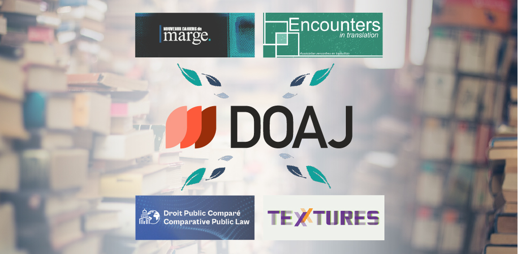En 2025, quatre revues soutenues par Prairial ont rejoint le DOAJ, le répertoire international de référence pour les revues en accès ouvert : Droit public comparé, Encounters in translation, Nouveaux cahiers de Marge et Textures.